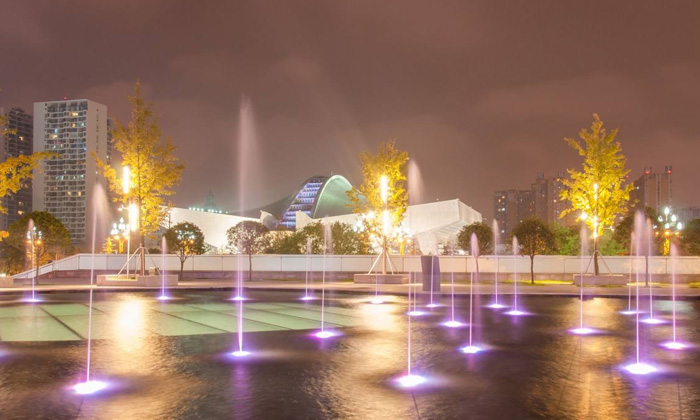 广场喷泉,是现代广场的亮点;增加广场的亮点,吸引力。也成为市民休闲,游玩的好去处。大型城市广场中的人工动态喷泉,也多来自自然的种种水态,如瀑布、叠水、水帘、溢流、溪流、壁泉等,随着科学技术的发展进步,各种喷泉真是花样翻新、层出不穷,几乎达到了人们随心所欲创造各种晶莹剔透、绚丽多姿动态水景的程度。喷泉在当今时代,已经形成了一道独特的人文景观。