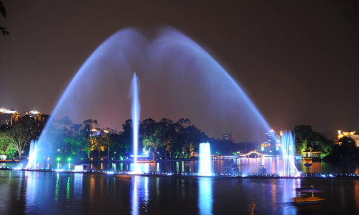 漂浮喷泉又称湖面喷泉,整座水景喷泉的管道系统全部安装在浮箱上,喷泉设备的运行不受季节性水位高低的影响。浮箱是采用钢板或不锈钢板焊接而成的,箱体内均采取海洋船用油漆进行防腐处理,确保其使用寿命。漂浮式喷泉制作、安装工艺技术性强,但维护方便,易于保养。